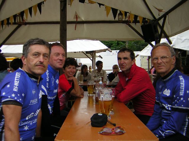 Treffpunkt 14:00 Uhr, kurzer Anruf zuvor an die potenziellen R-Radler, jeder hat erst einmal zugesagt, aber das Wetter war nicht so besonders (16 Grad) in Wettstetten. Werner sagte kurzfristig ab (Pech gehabt). Also waren wir nur fünf RR’ler.Unterwegs kam dann die Sonne raus so dass die Stimmung stieg. In Titting angekommen hat sich die Sonne aber wieder verkrochen, es waren aber wie letztes Jahr schon einige Rennradgruppen anwesend. Die waren natürlich auch ein bisschen kleiner wie wir auch, aber die Stimmung war super. Auf der Heimfahrt kam wieder die Sonne raus und es war so richtig schön.
