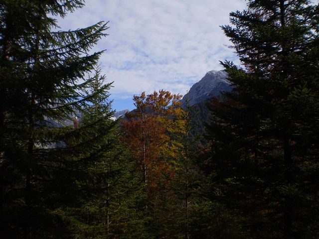 Kurz nach halb zehn ging es los, stopp Dietmar hatte noch seine Turnschuhe an, vergessen? Nein, nur nicht angezogen. Also dann los Richtung Scharnitz bis zur Abzweigung Karwendeltal. Hier ging es erst Richtung Pfeishütte, dann rechts ab rauf zur Oberbrunnalm. Was für ein Panorama, unterhalb der Birkarspitze entlang zur einer Abzweigung. Fußweg oder Fahrweg zur Oberbrunnalm? Dieter ganz entschlossen, natürlich Fahrweg, nicht schieben!
